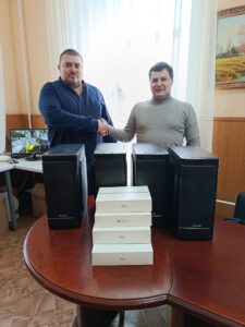 АТ КБ «ПриватБанк» в особі старшого менеджера департаменту по зарплатним карткам Центрального макрорегіонального управління АТ КБ «ПриватБанк» Азарова Євгенія передав у власність комп’ютерну техніку для