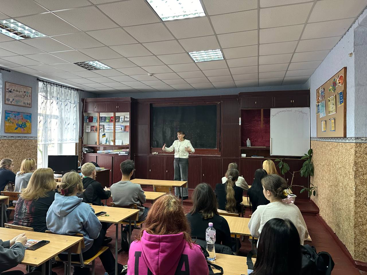 На уроці історії викладач Зубченко Т В. згадувала про кроки до визволення України від німецько-фашистських загарбників, ціну, яку було заплачено і закликала здобувачів освіти схилити голову у жалобі перед світлою пам’яттю Героїв усіх часів, тих, хто віддав життя за порятунок рідного краю, увійшовши у безсмертя.