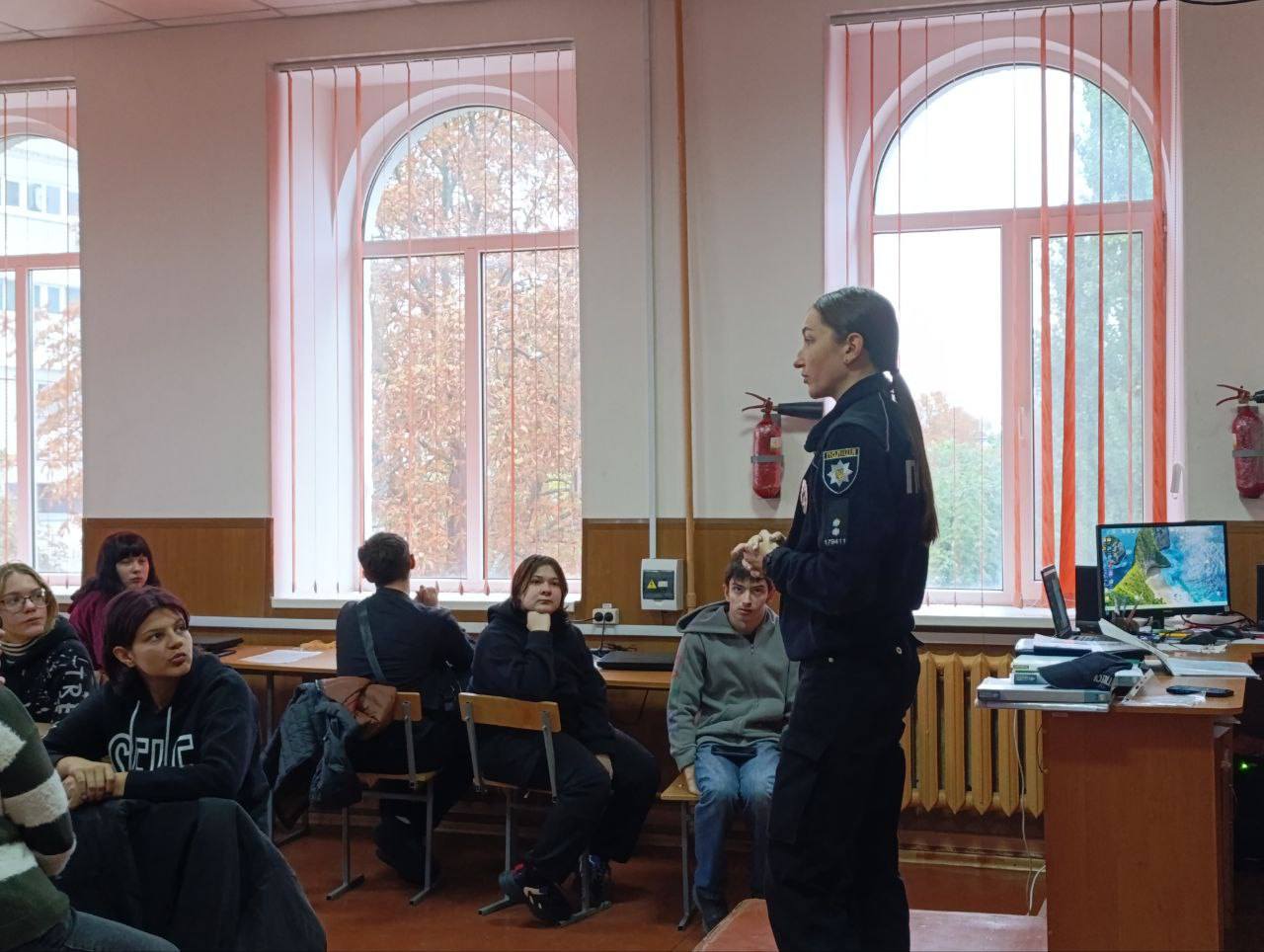 1 жовтня 2025 року інспектор сектору ювенальної превенції ВП Кременчуцького РУП ГУНП в Полтавській області лейтенант поліції Петрова Дарʼя Вікторівна для здобувачів освіти училища провела виховний захід на тему: «День захисників і захисниць України».