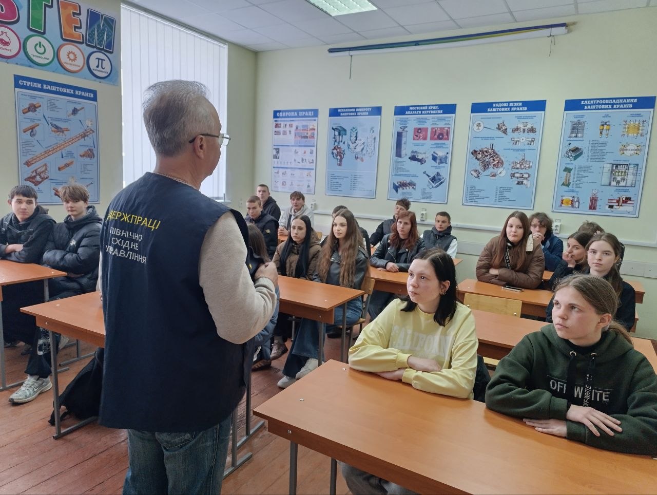 До Всесвітнього дня охорони праці головний державний інспектор відділу з питань безпеки праці південного регіону управління інспекційної діяльності у Полтавській області Північно-Східного міжрегіонального управління Державної служби з питань праці Гладенький Віктор Миколайович провів зустріч зі студентами з метою привернення уваги до питань охорони праці, запобігання нещасним випадкам на виробництві та професійним захворюванням.