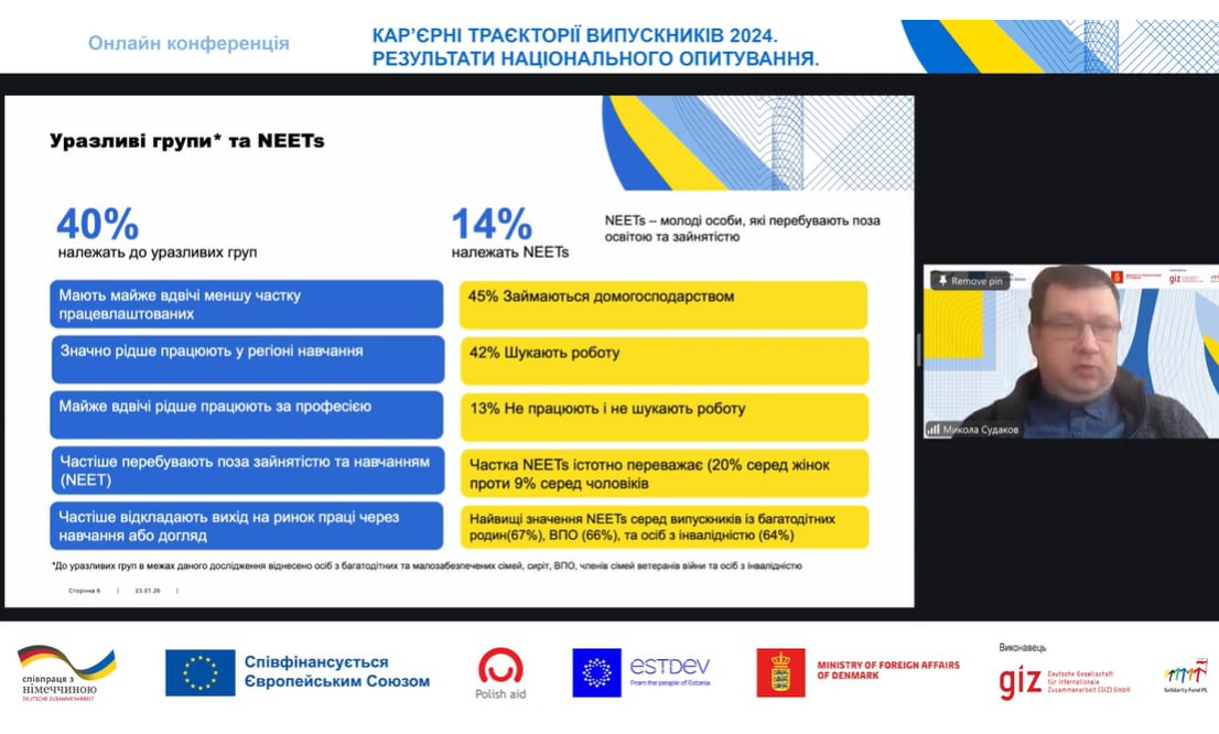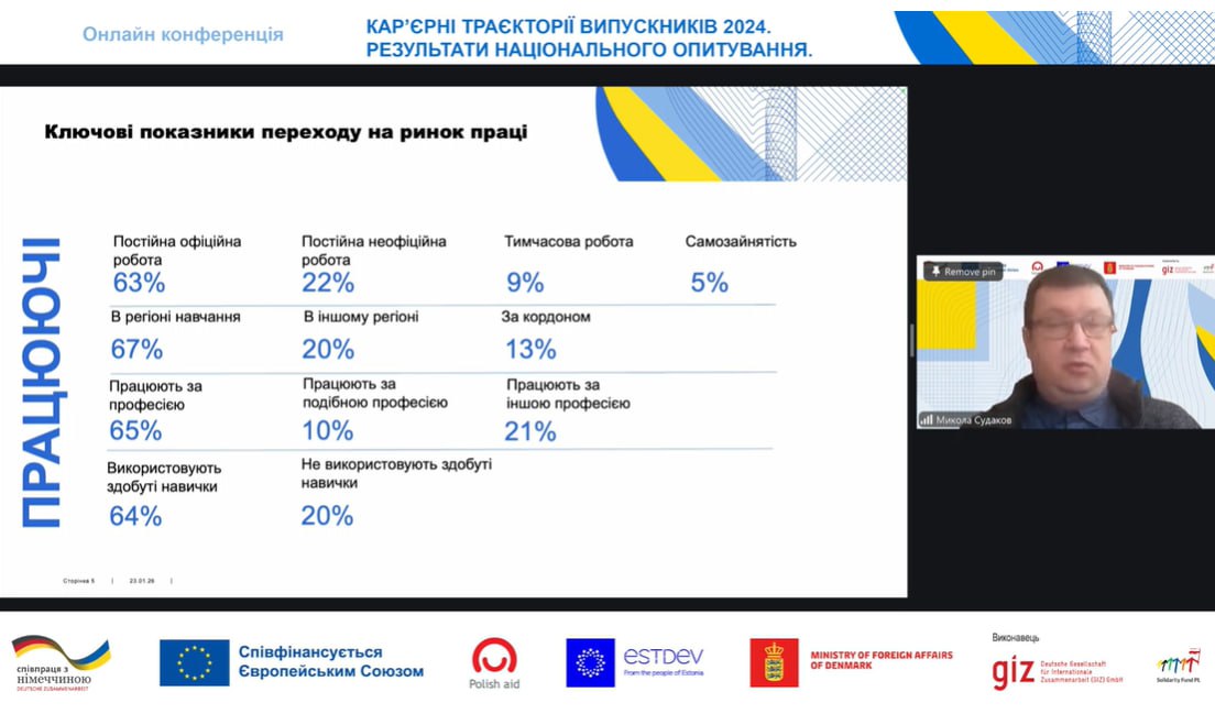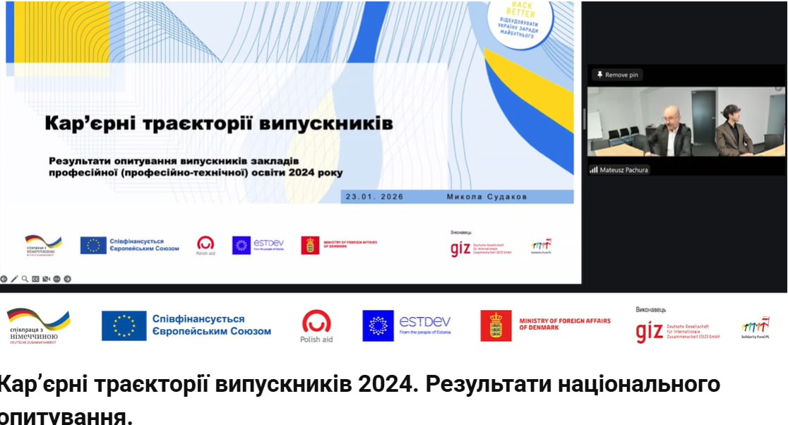 Педагогічні працівники Професійно-технічного училища № 26 м. Кременчука 23 січня 2026 року взяли участь у конференції на тему: «Кар’єрні траєкторії випускників 2024. Результати національного опитування», яка проводиться в рамках Мультидонорської ініціативи Skills4Recovery.