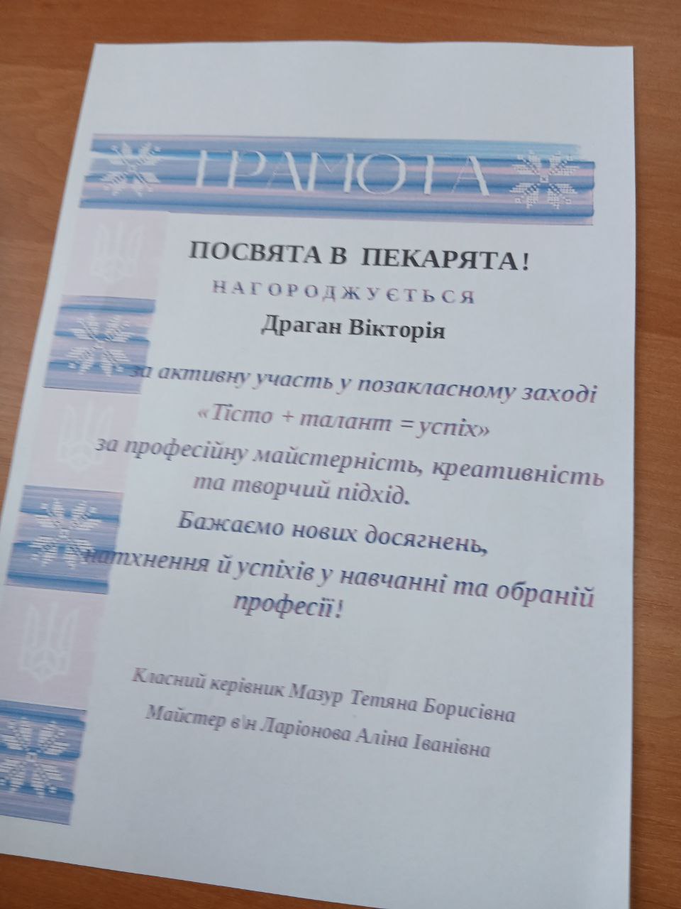 У Професійно-технічному училищі № 26 м. Кременчука 24 жовтня 2025 року проведено показовий позакласний захід на тему: «ТІСТО+ТАЛАНТ=УСПІХ» для здобувачів освіти першого курсу, групи № 4, які навчаються за інтегрованою професією «Пекар. Кондитер».