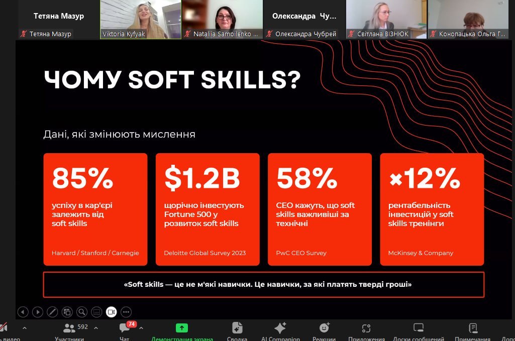 Під час заходу було представлено структуру курсу, його змістове наповнення та можливості використання як інструменту для підвищення особистої ефективності, розвитку команд закладів освіти та формування ключових компетентностей здобувачів освіти.