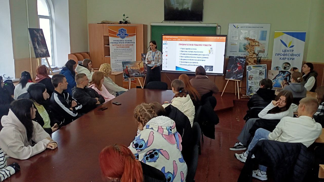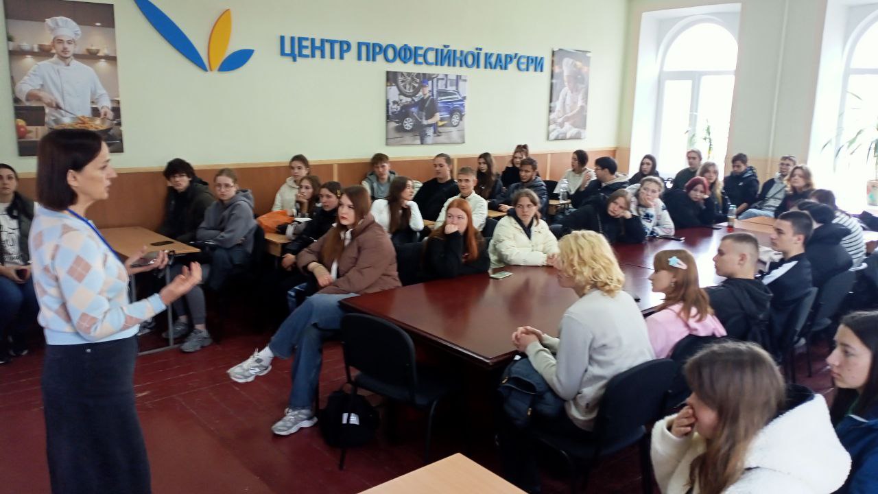 У рамках співпраці із Кременчуцькою філією Полтавського обласного центру занятості та центром професійної кар’єри – організовано зустріч фахівця ЦЗ Марини Ларченко з учнями 3-го курсу групи №1 (Кухар-кондитер) та групи №5 (Пекар-кондитер) та учнями 2-го курсу групи №2 (Кухар-кондитер).