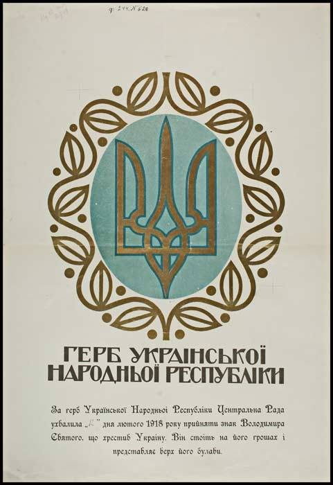 | Із протоколу засідання Малої Ради25 лютого 1918 року, місто КоростеньУ справі державного герба України Мала Рада ухвалила: “Гербом Української Народної Республіки приймається знак Київської Держави часів Володимира Святого”. |