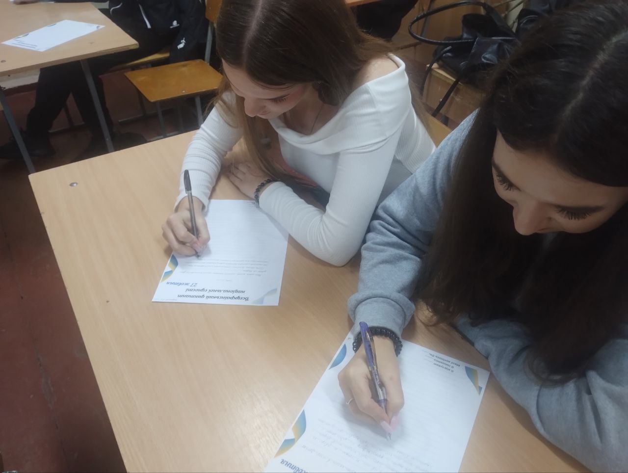 Всеукраїнський радіодиктант національної єдності став щорічною традицією для багатьох українців. 27 жовтня учні нашого навчального закладу вже вкотре долучилися до цієї події. У часи повномасштабного вторгнення, коли українці виїхали за межі держави, аби рятуватися від російської агресії, написання диктанту в один час може додати відчуття єднання.