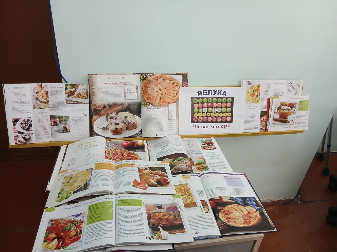 У бібліотеці Професійно-технічного училища № 26 м. Кременчука 20 жовтня 2025 року було оформлено виставку літературних видань на тему: «Яблука на всі манери» до Дня кухаря і кулінара в рамках проведення тижня методичної комісії «Сфери послуг і харчової промисловості». Виставку підготувала завідувачка бібліотекою Копичко Т.М.